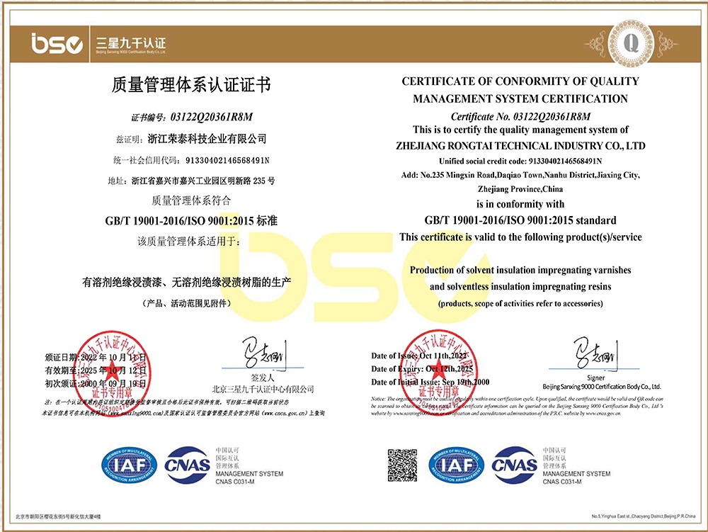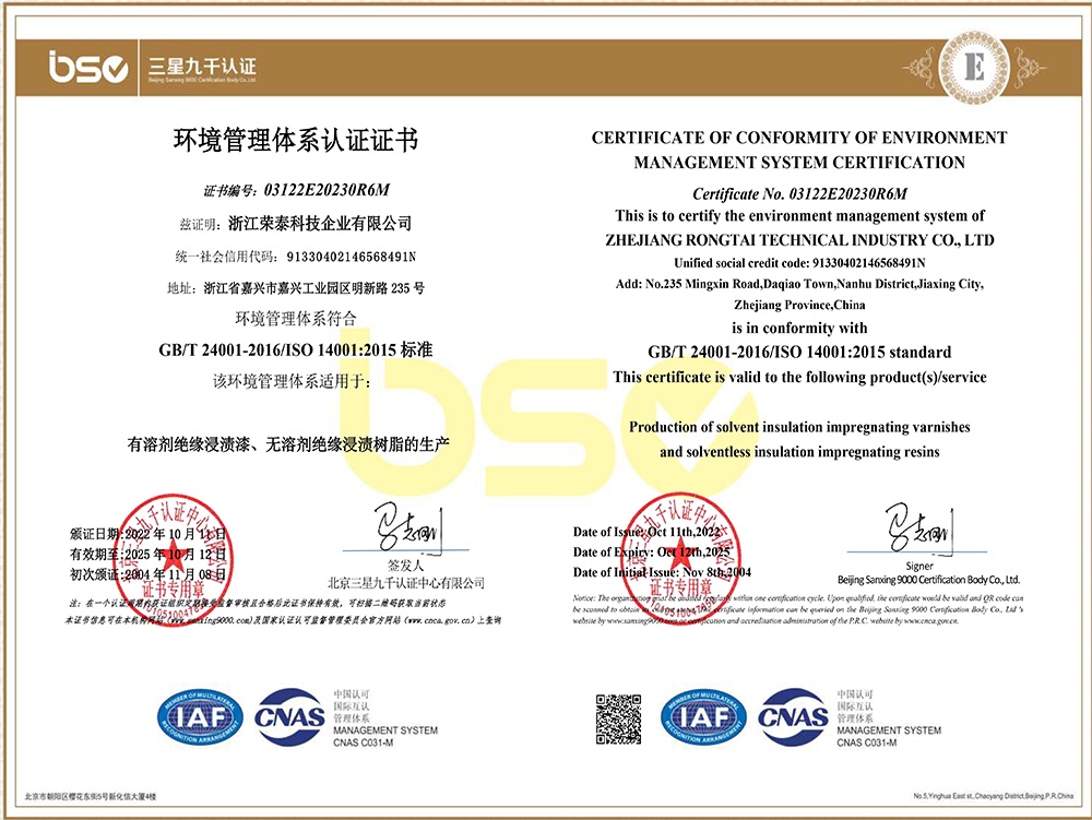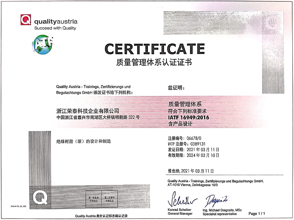 • 浙江榮泰科技企業有限公司為專業生產高性能絕緣材料的國家高新技術企業、國家“小巨人”企業,為國內最大?的絕緣漆生產商,全國絕緣材料行業協會的副理事長單位,規模、產品技術和創新能力處于同行業領先地位。